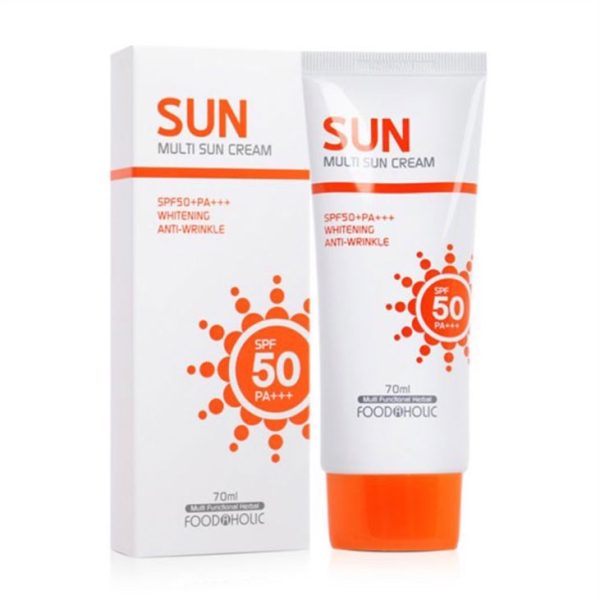 کرم ضد آفتاب چندکاره مولتی سان کریم با SPF50+و PA+++ فوداهولیک یک ضد آفتاب قوی و چند منظوره می باشد. این ضدآفتاب دارای SPF 50+ و فاکتور محافظتی بالای PA+++ می باشد. از این رو تا ۱۲ ساعت از پوست شما در برابر اشعه های ماوراء بنفش UVA و UVB محافظت می کند. این کرم خواص آنتی اکسیدانی و ضد چروک داشته و با تغییرات پوستی و علائم پیری مرتبط با افزایش سن مبارزه می نماید. همچنین کرم ضدآفتاب مولتی سان کریم فوداهولیک حاوی SPF 50+و PA+++ پوست را آبرسانی، مرطوب و روشن تر می کند.